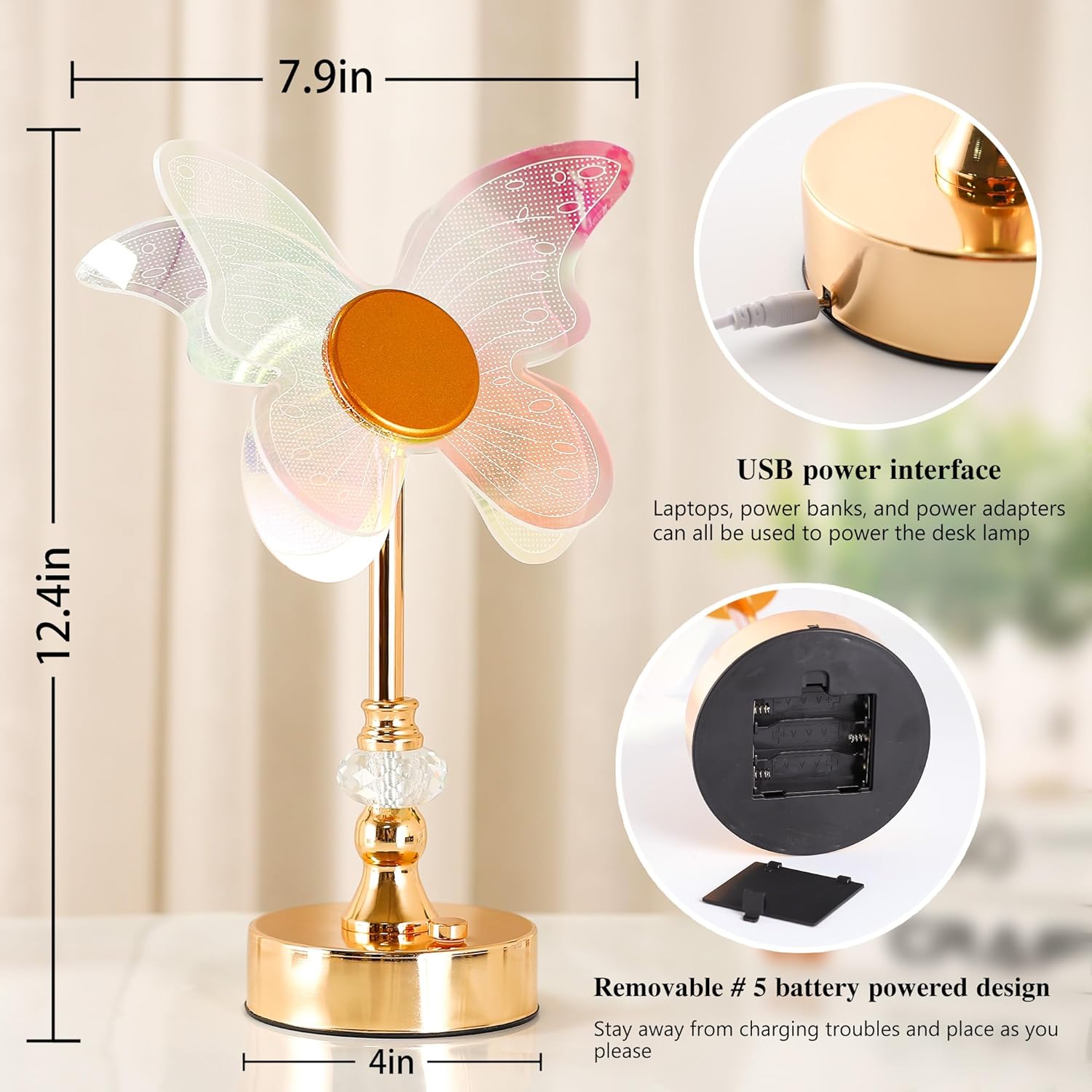 - 【Cordless Table Lamp】The butterfly night light offers dual power modes (USB charging & built-in battery), making the bedside lamp perfect portable light for any space with no more tangled cords. Decorate your room with this 3D desk lamp, perfect princess-style butterfly room decor for girls.