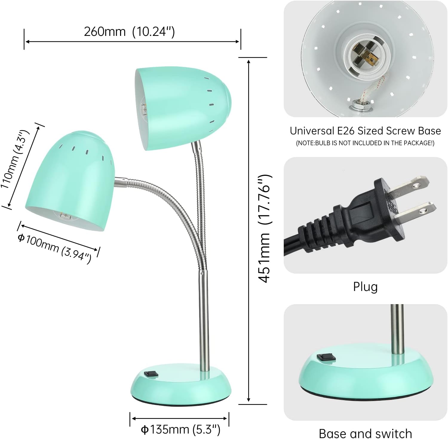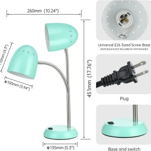 - 【Durable Material & Heat Dissipation】: Simple green matel bedroom lamp is made of imported metal material is durable, aesthetic,and will not fade. Considerate heat dissipation function of the study lamp won’t get hot when working.