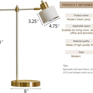 - High Quality Material:The matte white and gold finish table Lamp is constructed of high quality metal that creates the modern look. The base is a high quality metal base design to creates a beautiful desk lamp appearance. The quality of the lamp allows it to be long last and stylish, beautiful accessory for one’s room.